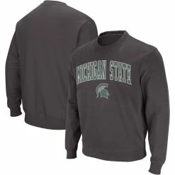 Men’s Colosseum Charcoal Mississippi State Bulldogs Arch & Logo Tackle Twill Pullover Sweatshirt
