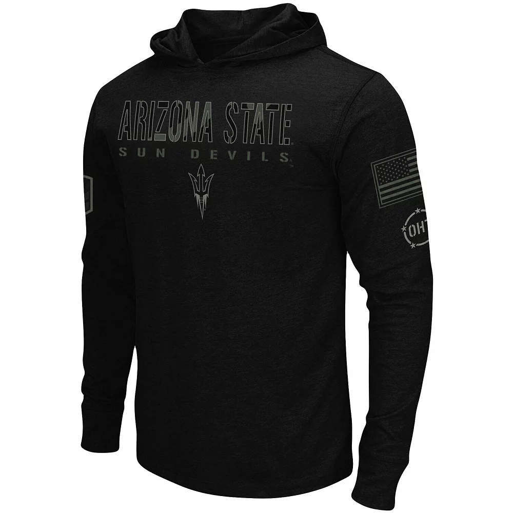 Represent your Arizona State Sun Devils in a patriotic way by wearing this OHT Military Appreciation Hoodie T-shirt from Colosseum. It features camo-inspired Arizona State Sun Devils graphics on the front and symbols of American pride on the back and sleeve. You’ll show support for more than just your favorite team in this inspiring tee.