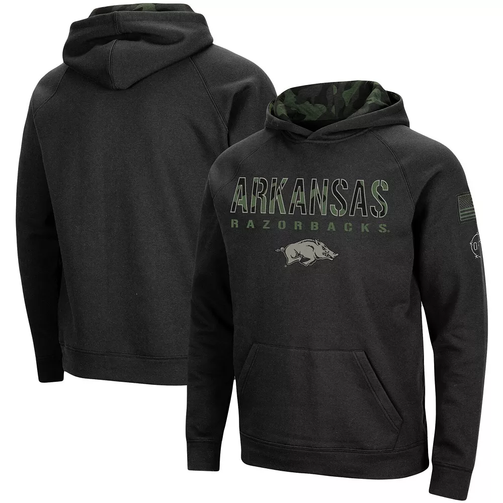 When the weather starts to cool, you still want to show your appreciation for those who serve and your Arkansas Razorbacks fandom. Reach for a cozy outer layer with this OHT Military Appreciation raglan pullover hoodie from Colosseum. With crisp Arkansas Razorbacks graphics and camo accents, this midweight hoodie puts your support on full display.