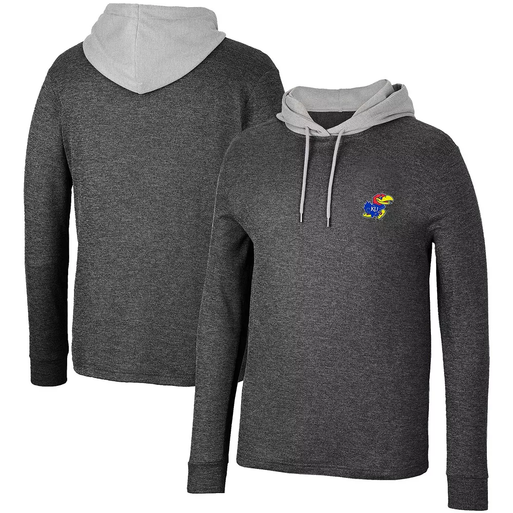 Boost your collection of Kansas Jayhawks game day apparel with this Ballot Thermal T-shirt from Colosseum. Its waffle-knit fabric helps provide warmth and keep you insulated, while the adjustable hood keeps you protected from the elements. Iconic Kansas Jayhawks graphics on the left chest are sure to make your die-hard fandom loud and clear.