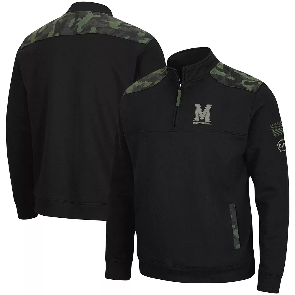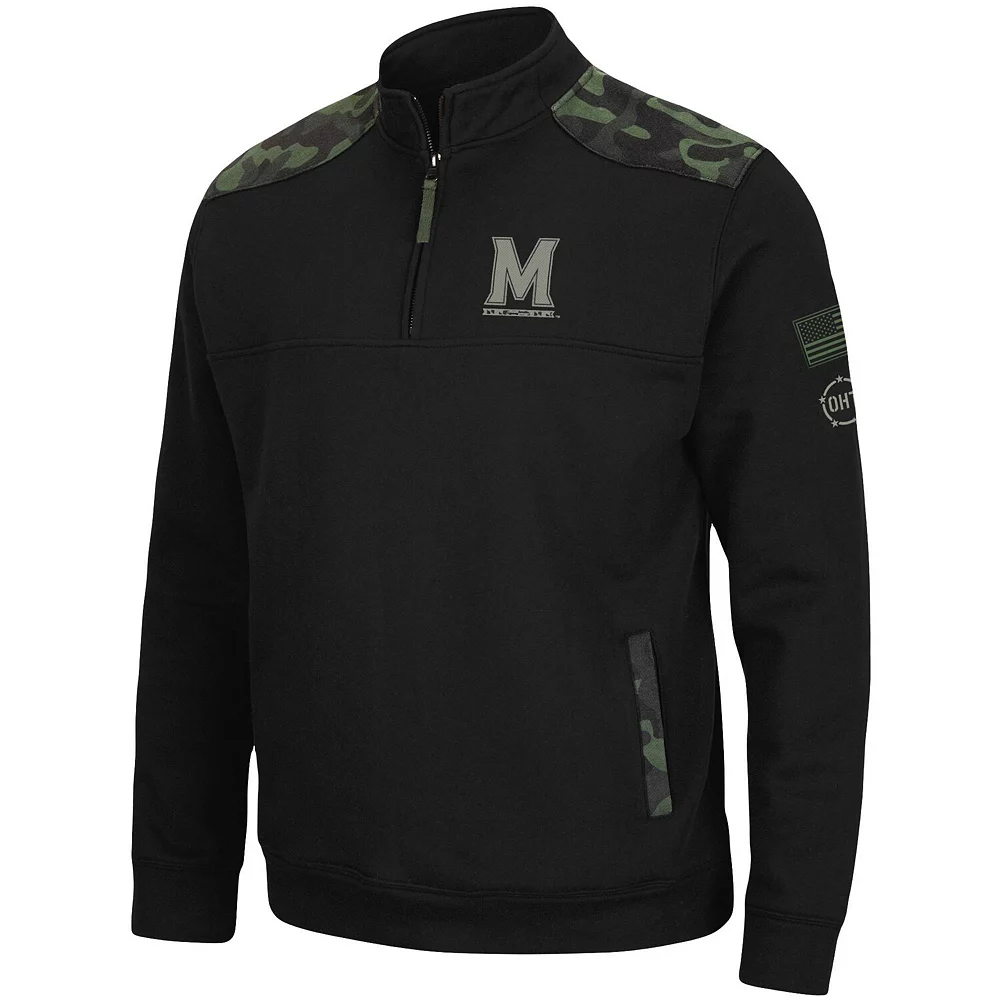 You love to show your Maryland Terrapins fandom and unmoving appreciation for military veterans. When the temperatures drop, reach for this OHT Military Appreciation Commo fleece quarter-zip from Colosseum. With its prominent camo pattern and crisp Maryland Terrapins graphics, you’ll be ready when the action on the field picks up and you’ll be supporting military veterans at the same time.