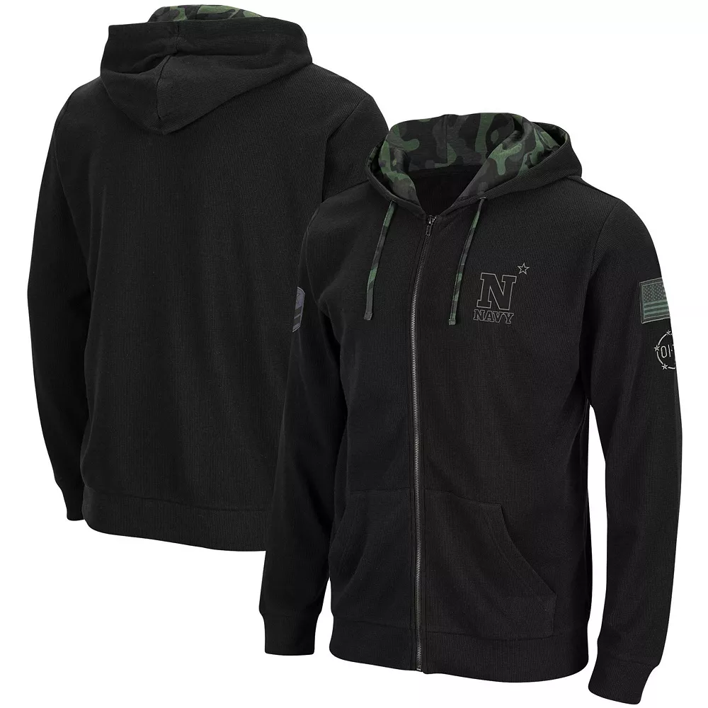 Elevate your Navy Midshipmen gear by grabbing this OHT Military Appreciation full-zip hoodie from Colosseum. It features embroidered Navy Midshipmen graphics that coordinate with the camo pattern on the drawstrings and hood lining. You’ll proudly represent your favorite collegiate squad when you put on this military-inspired outerwear.