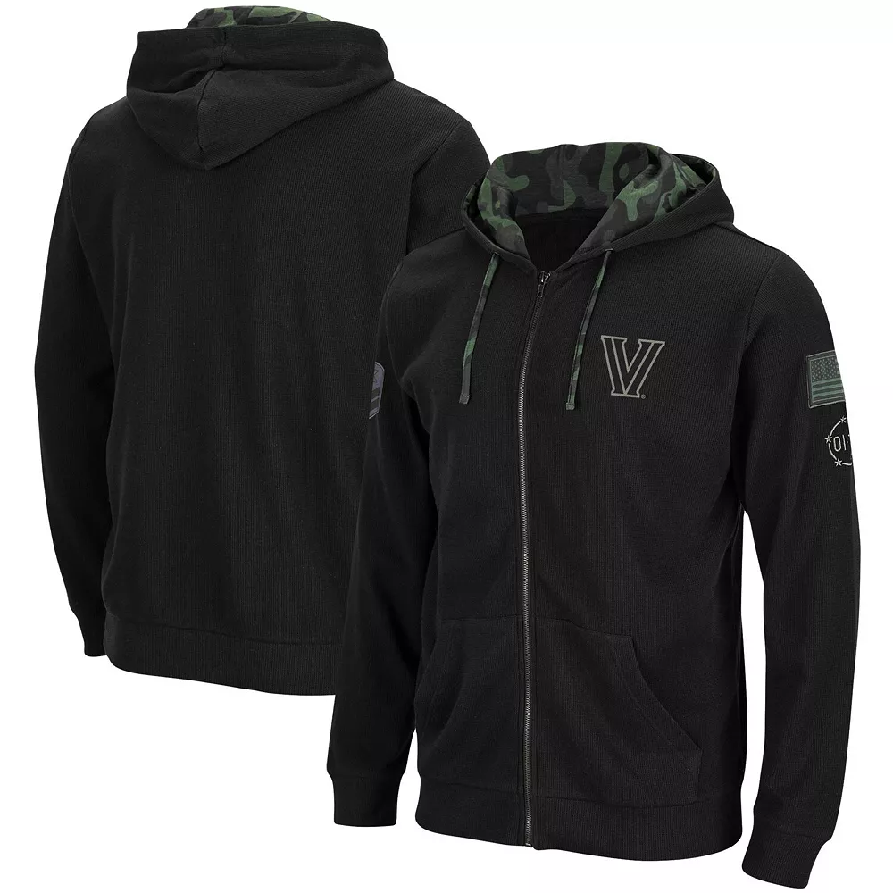 Elevate your Villanova Wildcats gear by grabbing this OHT Military Appreciation full-zip hoodie from Colosseum. It features embroidered Villanova Wildcats graphics that coordinate with the camo pattern on the drawstrings and hood lining. You’ll proudly represent your favorite collegiate squad when you put on this military-inspired outerwear.