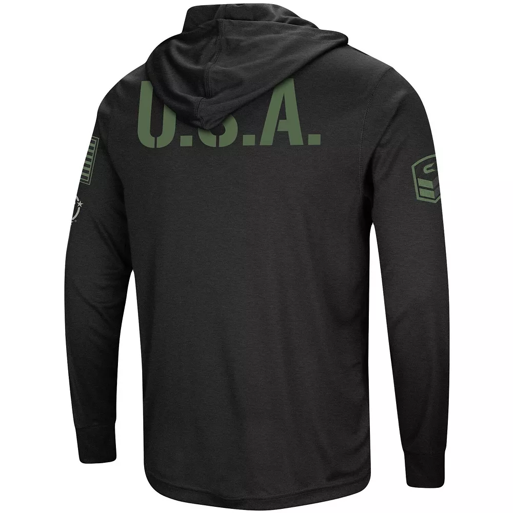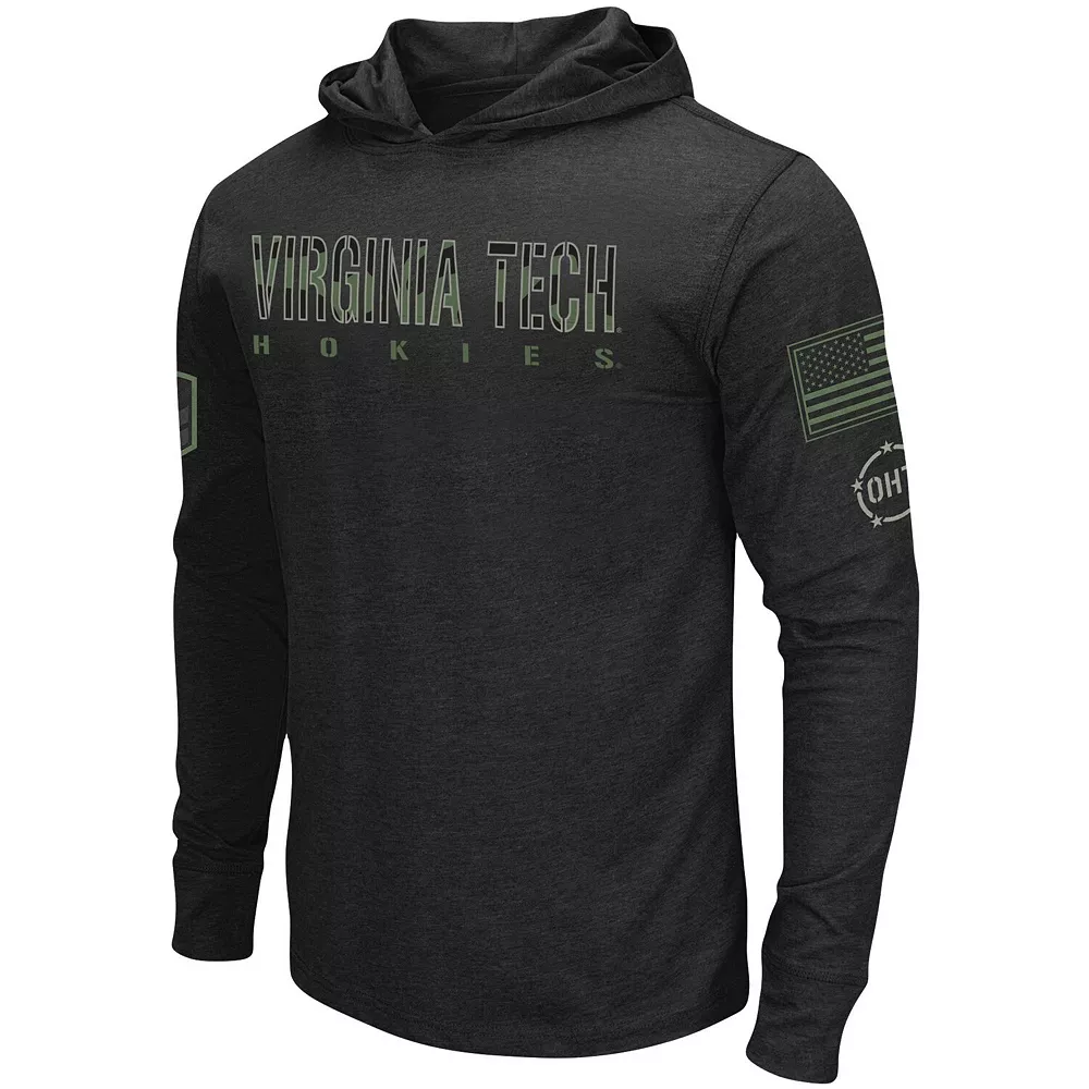 Represent your Virginia Tech Hokies in a patriotic way by wearing this OHT Military Appreciation Hoodie T-shirt from Colosseum. It features camo-inspired Virginia Tech Hokies graphics on the front and symbols of American pride on the back and sleeve. You’ll show support for more than just your favorite team in this inspiring tee.