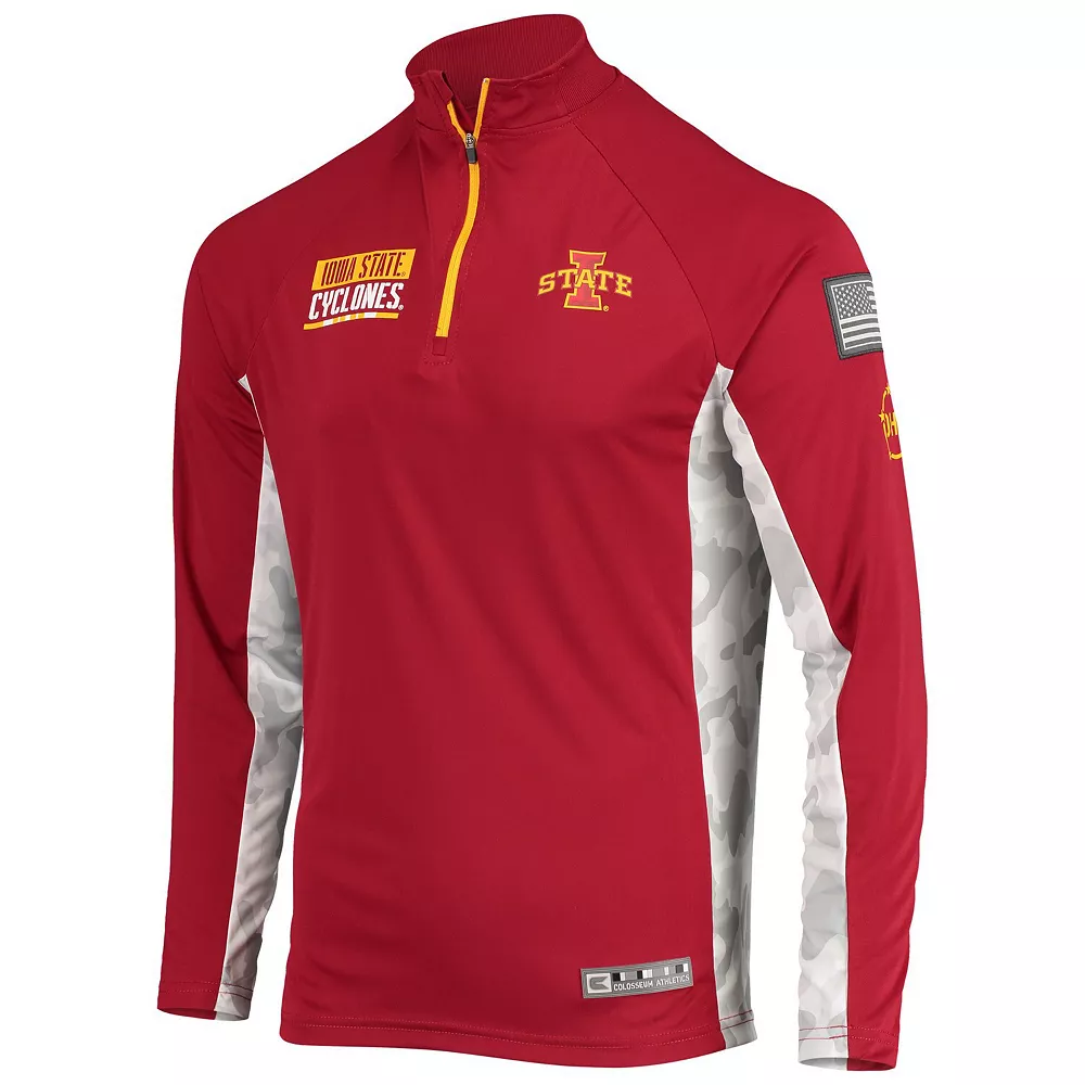 As a loyal member of the Iowa State Cyclones faithful, your game day gear should be top-notch. Make a quality new addition to your selection with this OHT Military Appreciation Snow Cruise Raglan 1/4-zip jacket from Colosseum. Along with the Iowa State Cyclones logo on the chest, this jacket comes complete with camo paneling along the arms for a unique extra layer you will be proud to show off.