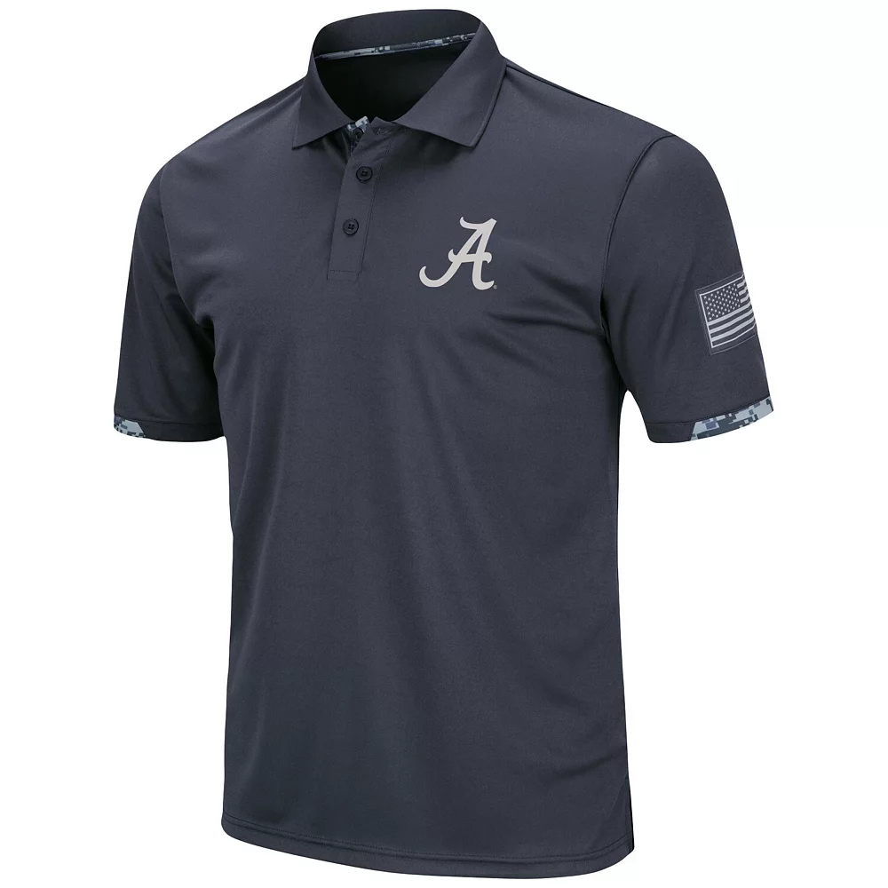 Support the Alabama Crimson Tide with this OHT Military Appreciation Digital Camo polo from Colosseum. Complete with camo trim at the sleeve cuffs and inside the collar, this polo features the team logo on the chest with an American flag applique on the sleeve. Thanks to its lightweight material, this piece of gear is a comfortable option for Alabama Crimson Tide fans full of team pride.