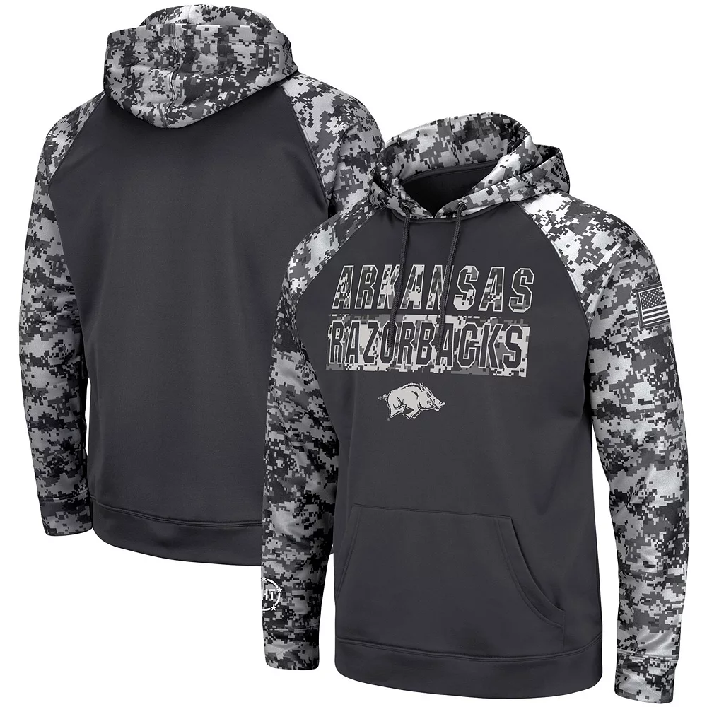 Illustrate your Arkansas Razorbacks pride in a captivating way by wearing this OHT Military Appreciation Digi Camo Big and Tall Pullover Hoodie from Colosseum. It features a noticeable sublimated pattern with Arkansas Razorbacks graphics that complement the design. You can simultaneously show support for your team and military members.