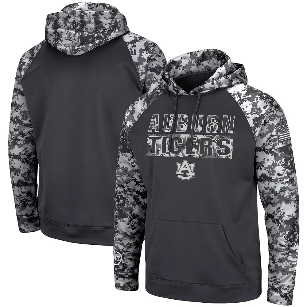 You love to show your Auburn Tigers fandom and your appreciation for military veterans. When the weather starts to drop, grab this OHT Military Appreciation Digital Camo pullover hoodie from Colosseum. With a striking digital camo pattern and crisp Auburn Tigers graphics, you’ll stay warm while supporting military veterans.