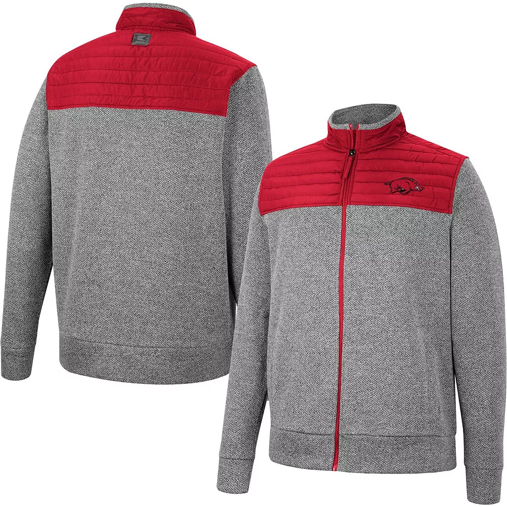Ready yourself for the cooler temperatures this season by layering up with this Arkansas Razorbacks Putter Herringbone full-zip jacket from Colosseum. The embroidered Arkansas Razorbacks logo overtop a splash of team color put your fandom on full display. This jacket is the perfect blend of comfort, style and team spirit that any fan should have in their wardrobe.