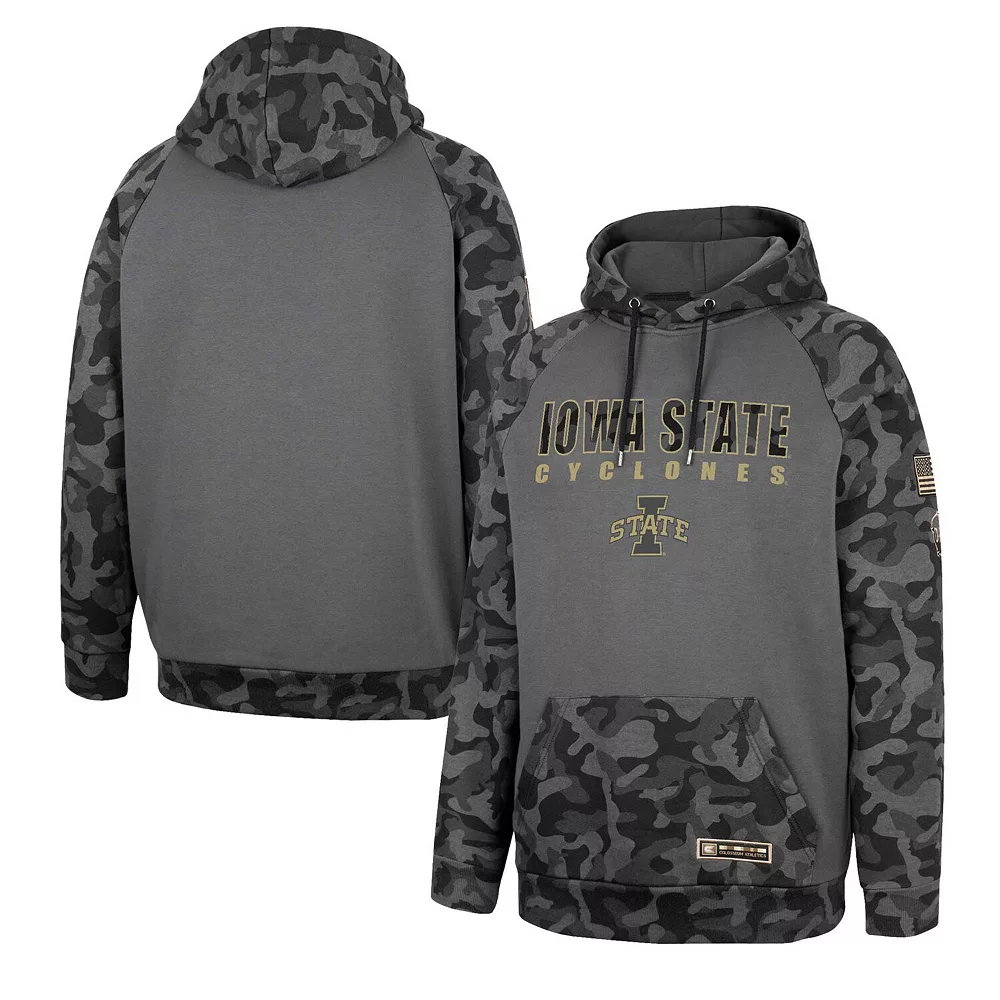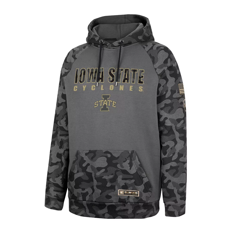 Your Iowa State Cyclones spirit is noticeable year-round when you sport this Colosseum OHT Military Appreciation Stack hoodie during chilly months. Bold Iowa State Cyclones graphics and an eye-catching camo pattern make for a dedicated fan look. Plus, raglan sleeves increase your arm room for more comfortable wear.