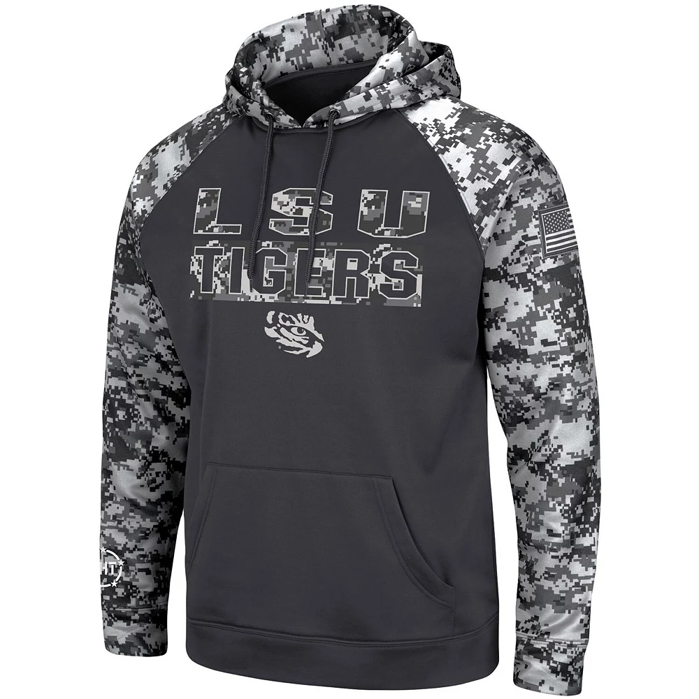 You love to show your LSU Tigers fandom and your appreciation for military veterans. When the weather starts to drop, grab this OHT Military Appreciation Digital Camo pullover hoodie from Colosseum. With a striking digital camo pattern and crisp LSU Tigers graphics, you’ll stay warm while supporting military veterans.
