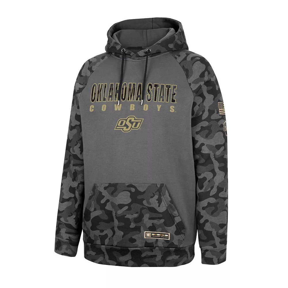 Your Oklahoma State Cowboys spirit is noticeable year-round when you sport this Colosseum OHT Military Appreciation Stack hoodie during chilly months. Bold Oklahoma State Cowboys graphics and an eye-catching camo pattern make for a dedicated fan look. Plus, raglan sleeves increase your arm room for more comfortable wear.