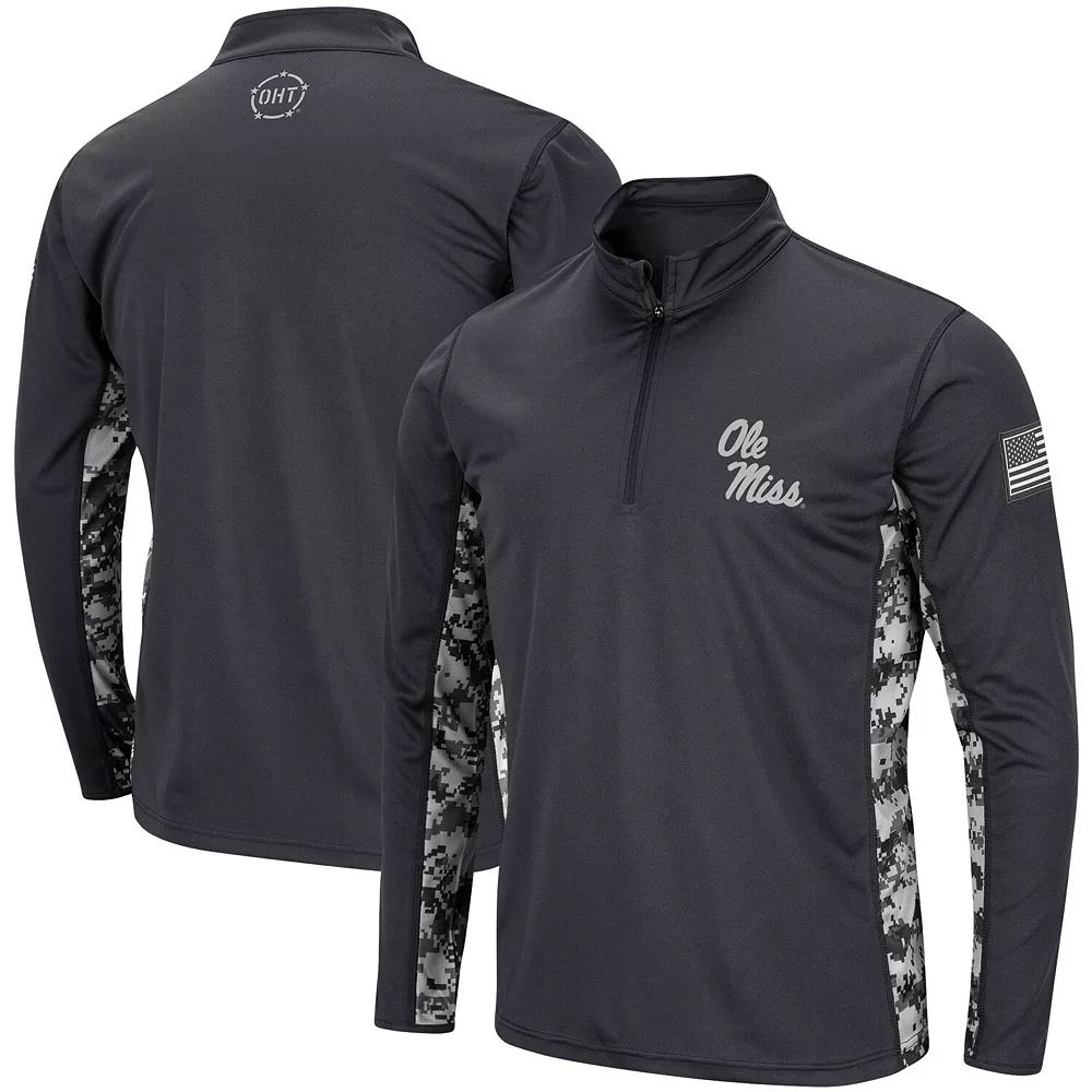 Express your undeniable dedication to the Ole Miss Rebels by grabbing this OHT Military Appreciation Digi Camo Quarter-Zip jacket from Colosseum. It features embroidered Ole Miss Rebels graphics that coordinate with the camo design down the sides. You’ll proudly represent your favorite collegiate squad when you put on this military-inspired piece of outerwear.