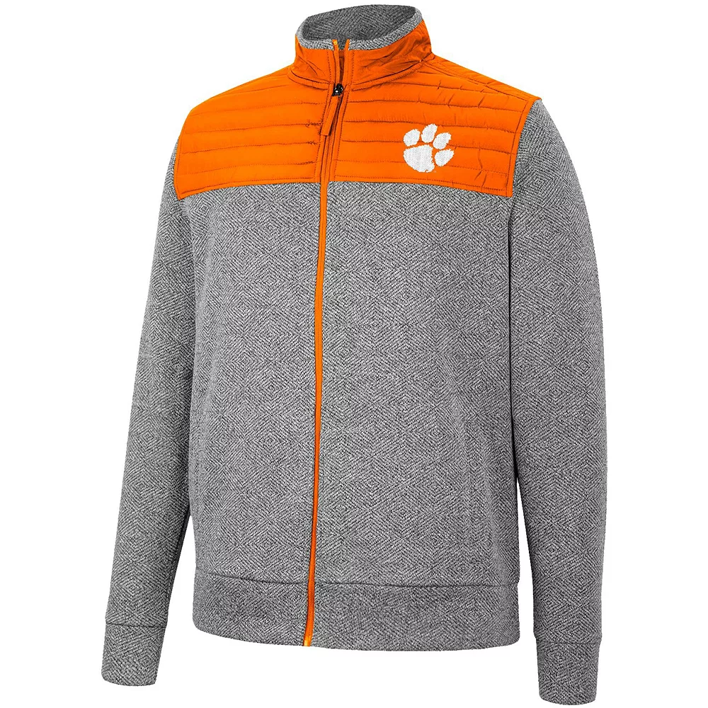 Ready yourself for the cooler temperatures this season by layering up with this Clemson Tigers Putter Herringbone full-zip jacket from Colosseum. The embroidered Clemson Tigers logo overtop a splash of team color put your fandom on full display. This jacket is the perfect blend of comfort, style and team spirit that any fan should have in their wardrobe.