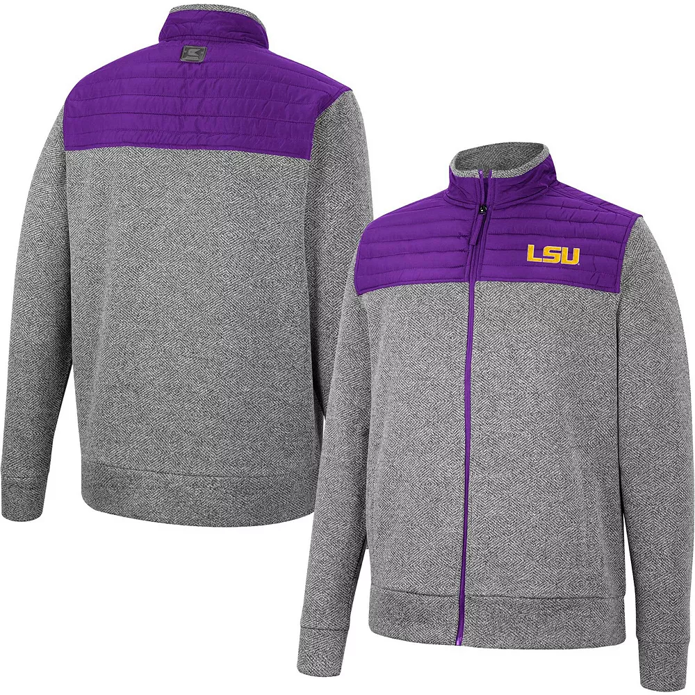Ready yourself for the cooler temperatures this season by layering up with this LSU Tigers Putter Herringbone full-zip jacket from Colosseum. The embroidered LSU Tigers logo overtop a splash of team color put your fandom on full display. This jacket is the perfect blend of comfort, style and team spirit that any fan should have in their wardrobe.