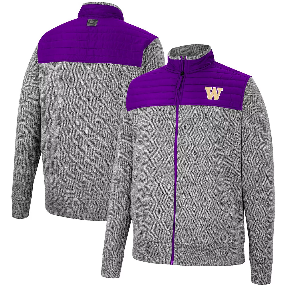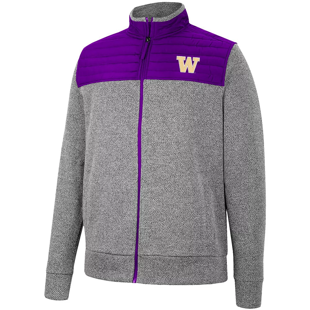 Ready yourself for the cooler temperatures this season by layering up with this Washington Huskies Putter Herringbone full-zip jacket from Colosseum. The embroidered Washington Huskies logo overtop a splash of team color put your fandom on full display. This jacket is the perfect blend of comfort, style and team spirit that any fan should have in their wardrobe.