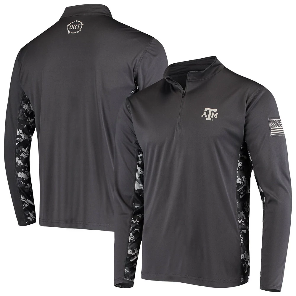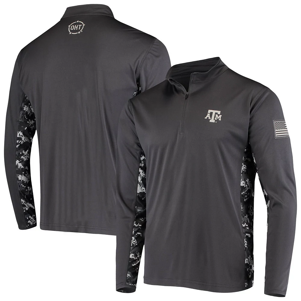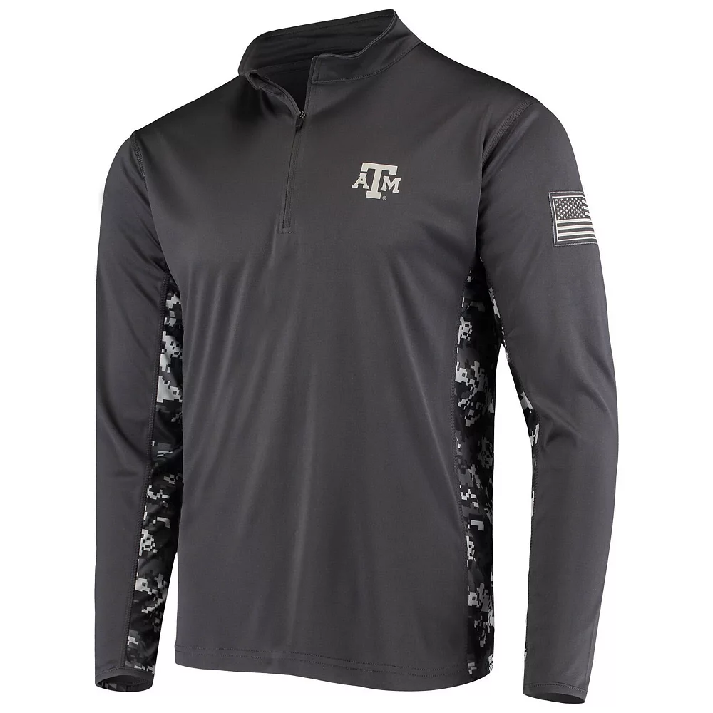 Express your undeniable dedication to the Texas A&M Aggies by grabbing this OHT Military Appreciation Digi Camo Quarter-Zip jacket from Colosseum. It features embroidered Texas A&M Aggies graphics that coordinate with the camo design down the sides. You’ll proudly represent your favorite collegiate squad when you put on this military-inspired piece of outerwear.