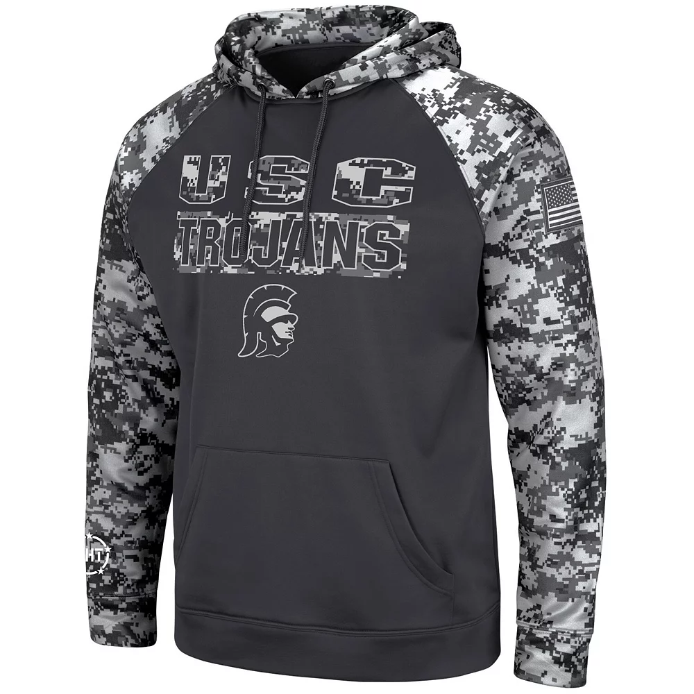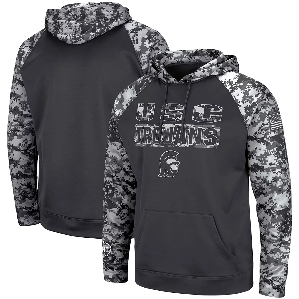 You love to show your USC Trojans fandom and your appreciation for military veterans. When the weather starts to drop, grab this OHT Military Appreciation Digital Camo pullover hoodie from Colosseum. With a striking digital camo pattern and crisp USC Trojans graphics, you’ll stay warm while supporting military veterans.