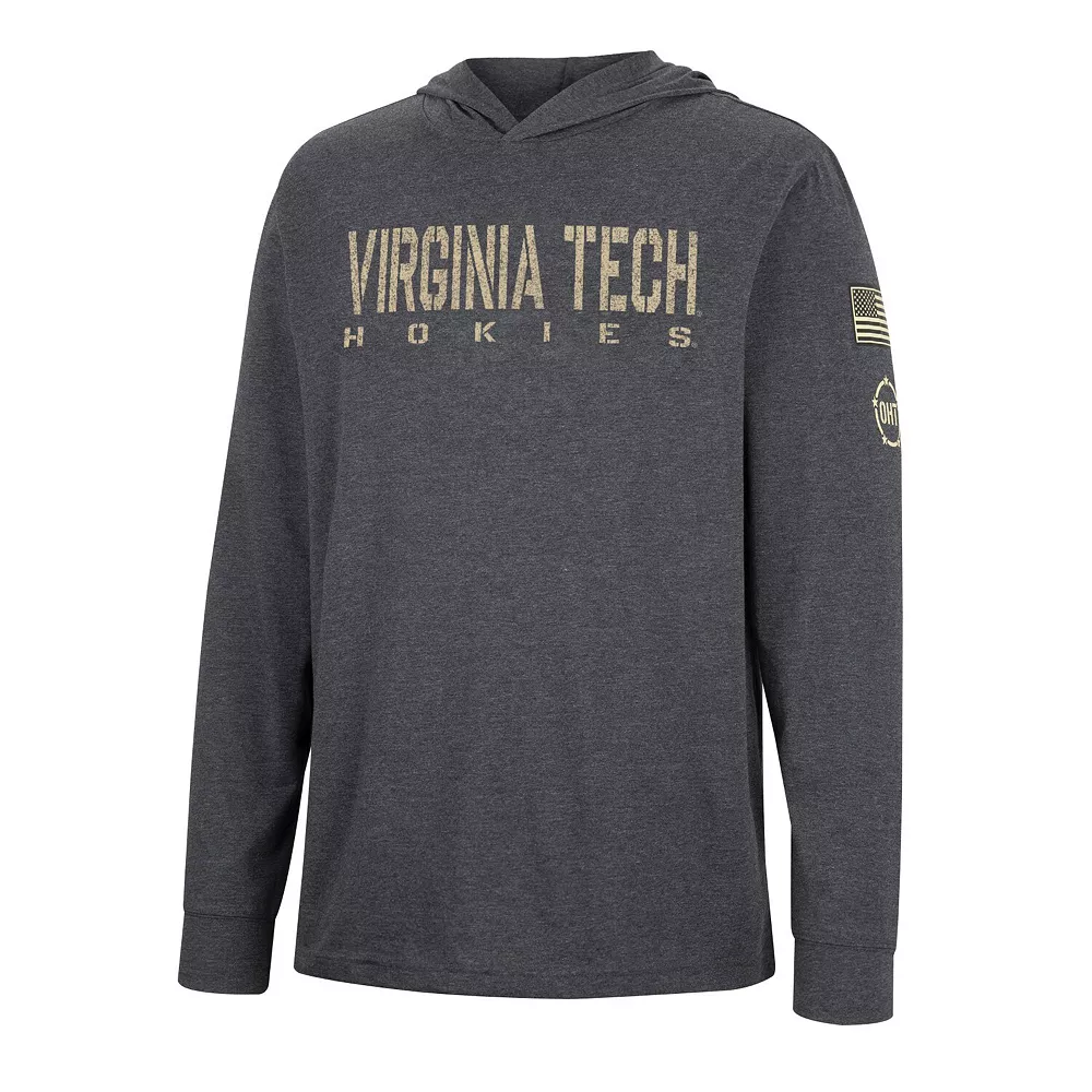Represent the Virginia Tech Hokies in patriotic fashion with this Colosseum OHT hoodie T-shirt. Not only does it feature distressed team graphics across the front and back, but the embroidered American flag and Operation Hat Trick logo on the left sleeve allow you to give a big thank you to our military members. Showing your appreciation for those brave individuals and the Virginia Tech Hokies has never been easier than it is with this long sleeve tee.
