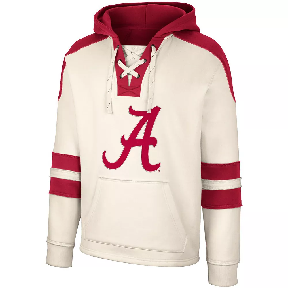 Show your unwavering Alabama Crimson Tide spirit with this Lace-Up 4.0 Vintage pullover hoodie from Colosseum. Not only is it the neckline that makes this top unique, but the sewn-on stripes on both sleeves add an extra layer of team color and excitement. The team’s logo across the front is sure to make this midweight piece your next go-to option for Alabama Crimson Tide game day.