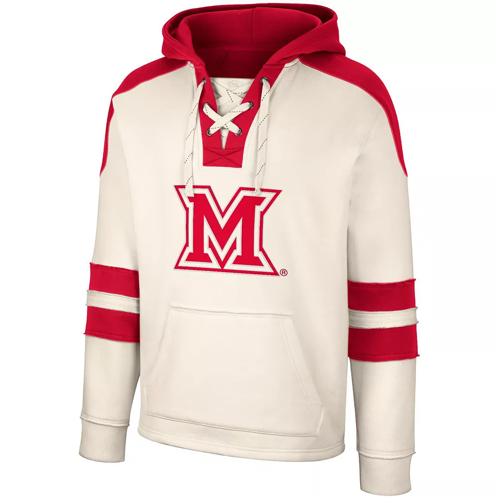Show your unwavering Miami University RedHawks spirit with this Lace-Up 4.0 Vintage pullover hoodie from Colosseum. Not only is it the neckline that makes this top unique, but the sewn-on stripes on both sleeves add an extra layer of team color and excitement. The team’s logo across the front is sure to make this midweight piece your next go-to option for Miami University RedHawks game day.