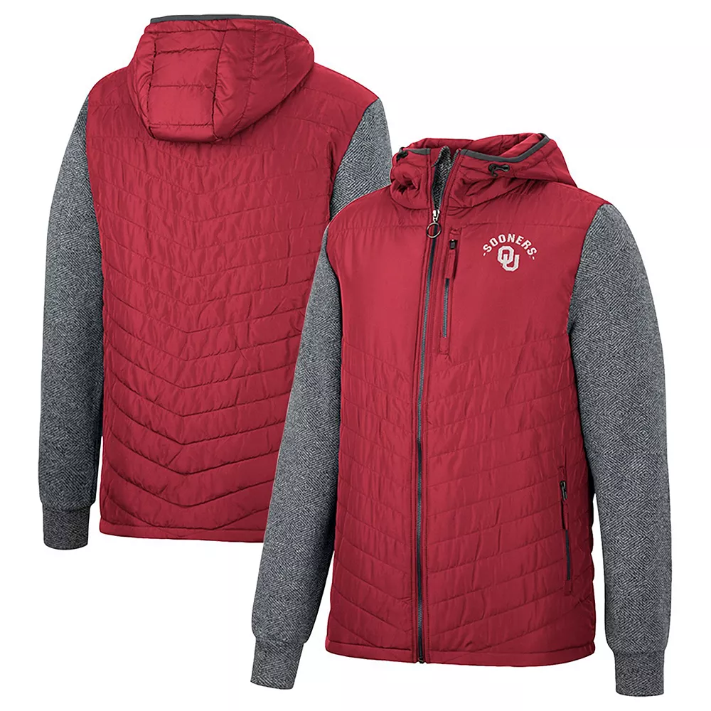 When the temperature drops on game day, layer up with this Oklahoma Sooners Course Herringbone full-zip hoodie from Colosseum. The bold embroidered graphics put your fandom on full display, and the scuba hood adds extra protection from the elements. Multiple zippered pockets allow you to keep your necessities within reach while you’re out and about.