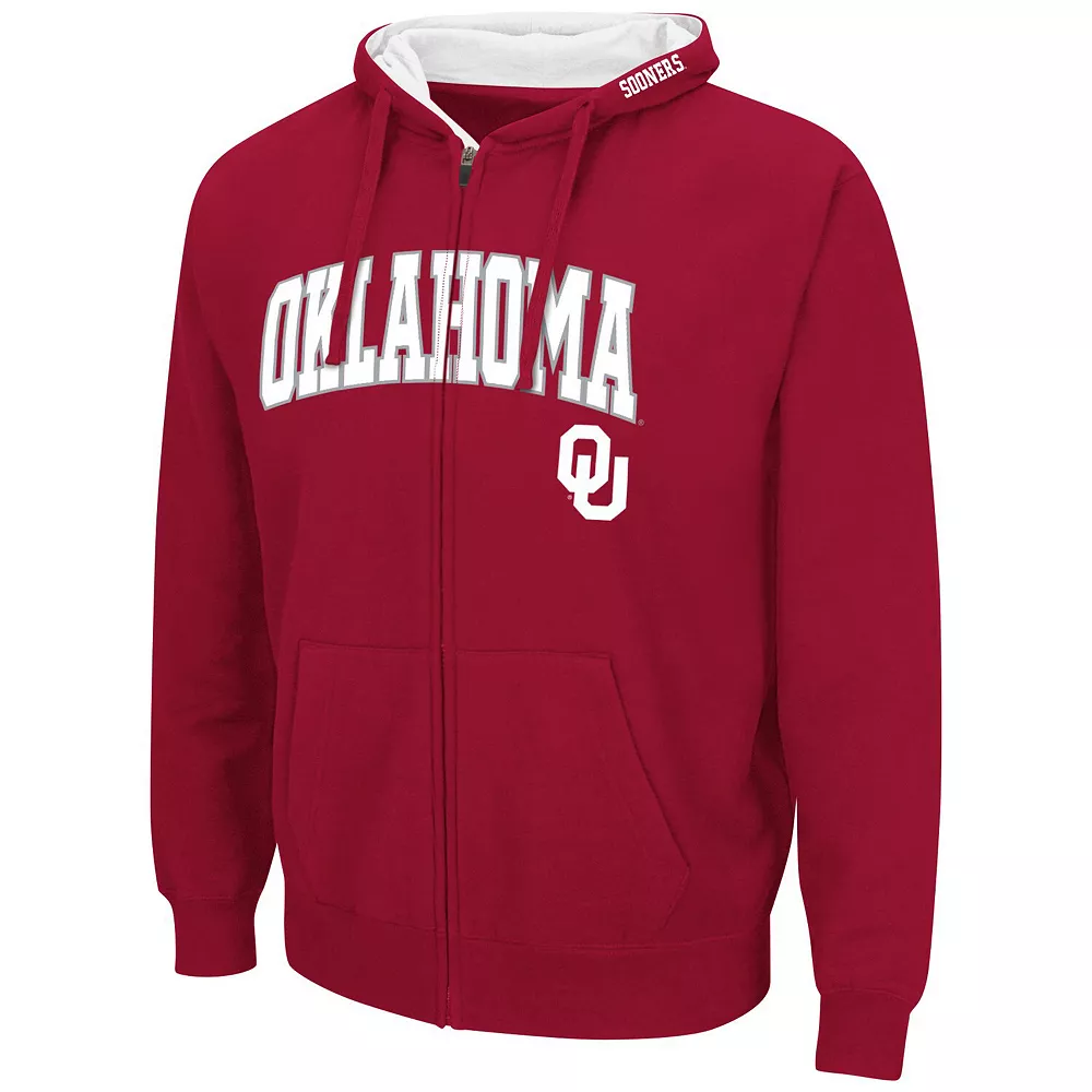 Layer up in a look fit for a true fan with this Arch & Logo 3.0 hoodie. With its bold Oklahoma Sooners graphics across the chest complemented by an understated wordmark on the hood, this Colosseum full-zip hoodie has collegiate allegiance in spades. Keep warm with your Oklahoma Sooners spirit in this comfortable hoodie.