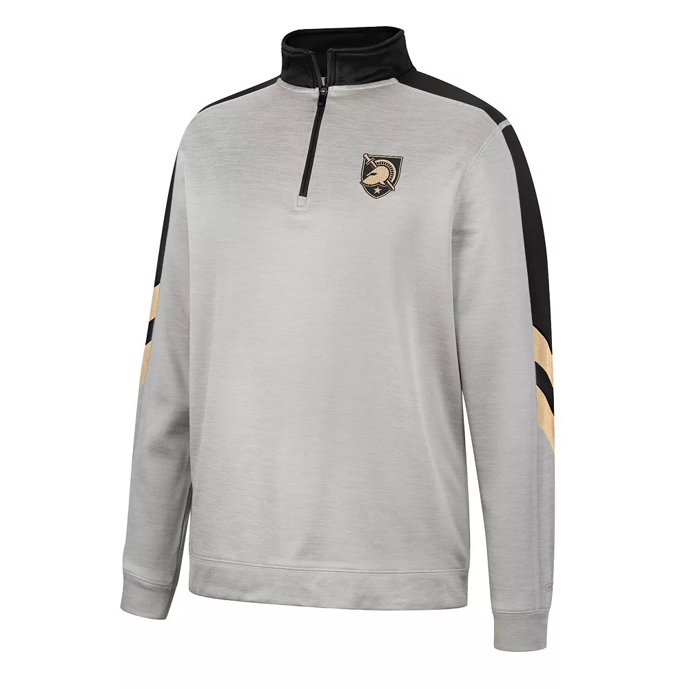 Focus attention on your Army Black Knights fandom by wearing this Bushwood Fleece jacket from Colosseum. It features understated Army Black Knights graphics highlighted by the contrasting sleeves in team colors. Additionally, the quarter-zip closure provides built-in venting to help you stay comfortable as weather conditions change.