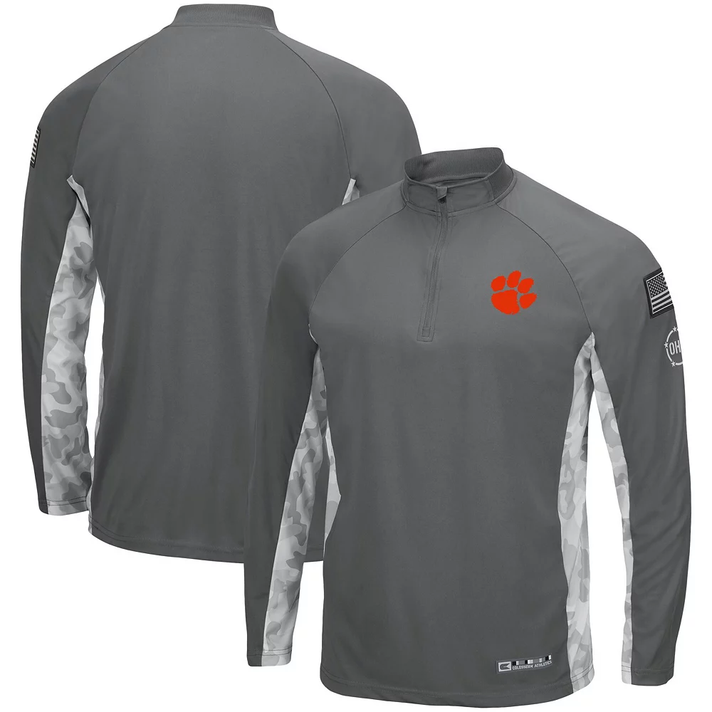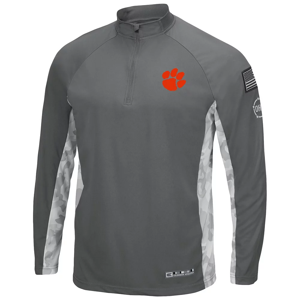Layer up and show your team spirit in this OHT Military Appreciation Swoop quarter-zip jacket from Colosseum. It features sleek Clemson Tigers graphics and an American flag to honor those that serve. Perfect for everyday wear, this Clemson Tigers jacket is a great way to share your fandom with the world.