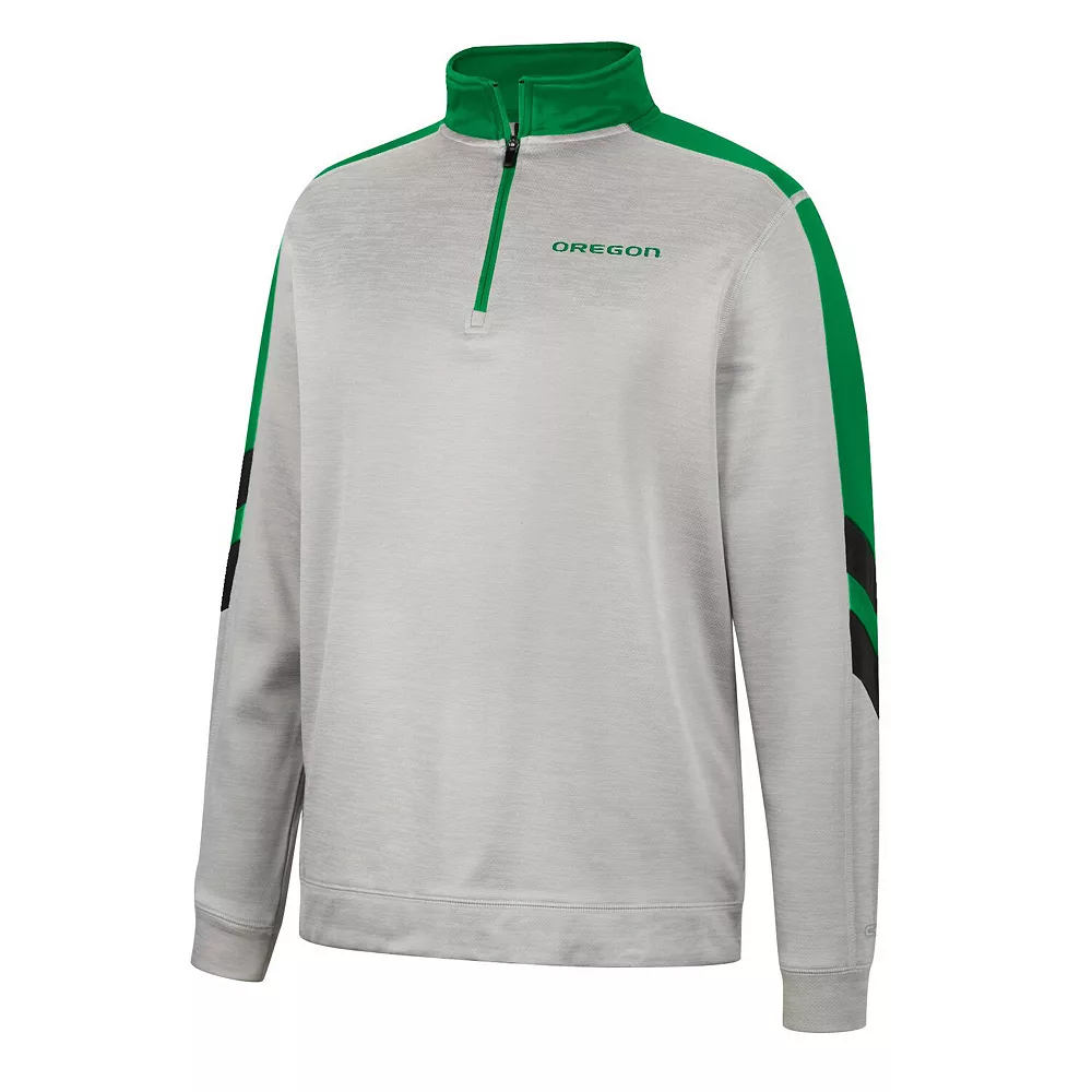 Focus attention on your Oregon Ducks fandom by wearing this Bushwood Fleece jacket from Colosseum. It features understated Oregon Ducks graphics highlighted by the contrasting sleeves in team colors. Additionally, the quarter-zip closure provides built-in venting to help you stay comfortable as weather conditions change.
