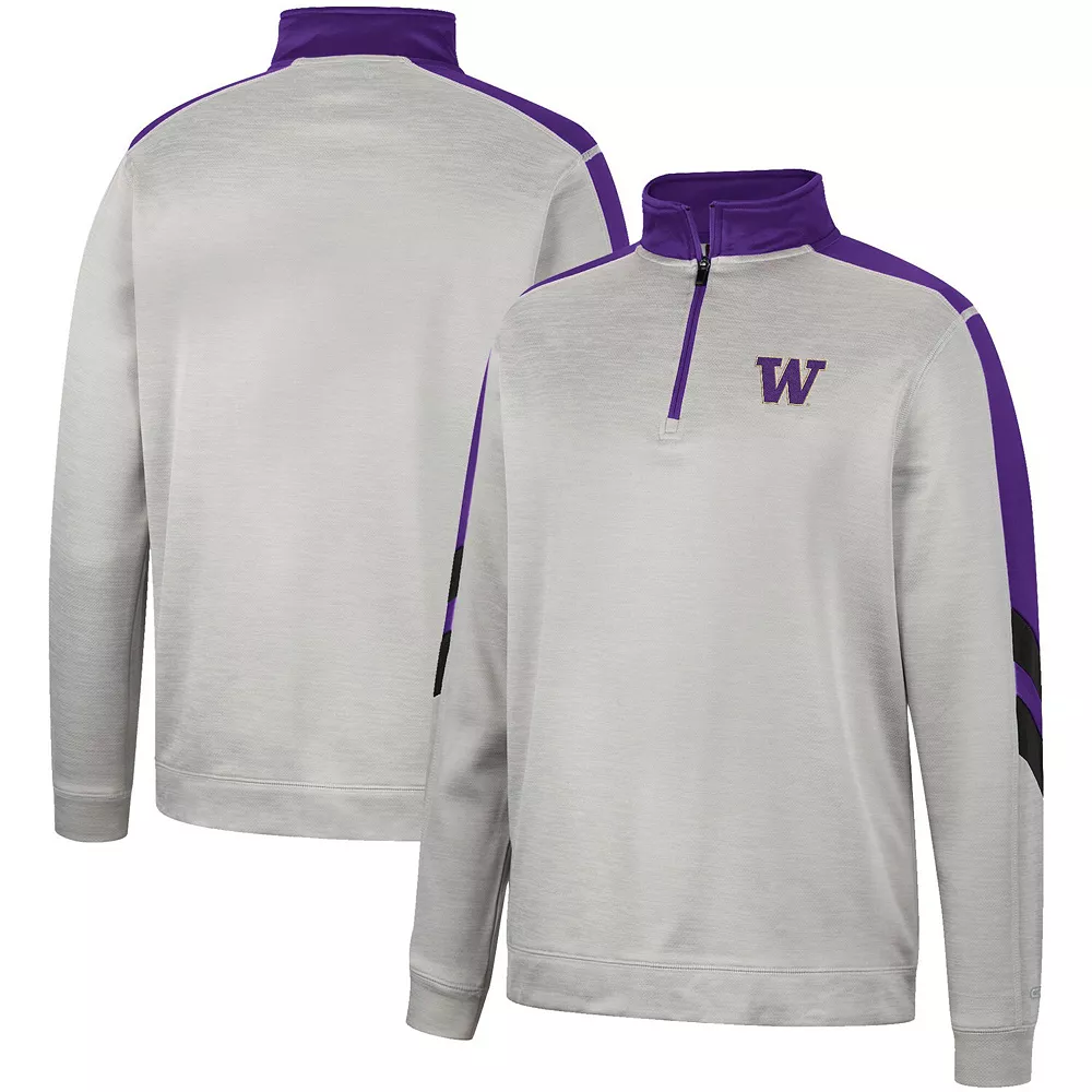Focus attention on your Washington Huskies fandom by wearing this Bushwood Fleece jacket from Colosseum. It features understated Washington Huskies graphics highlighted by the contrasting sleeves in team colors. Additionally, the quarter-zip closure provides built-in venting to help you stay comfortable as weather conditions change.