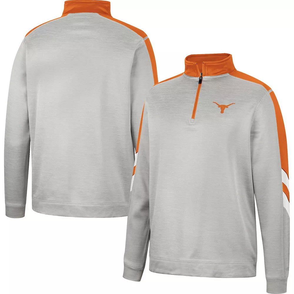 Focus attention on your Texas Longhorns fandom by wearing this Bushwood Fleece jacket from Colosseum. It features understated Texas Longhorns graphics highlighted by the contrasting sleeves in team colors. Additionally, the quarter-zip closure provides built-in venting to help you stay comfortable as weather conditions change.
