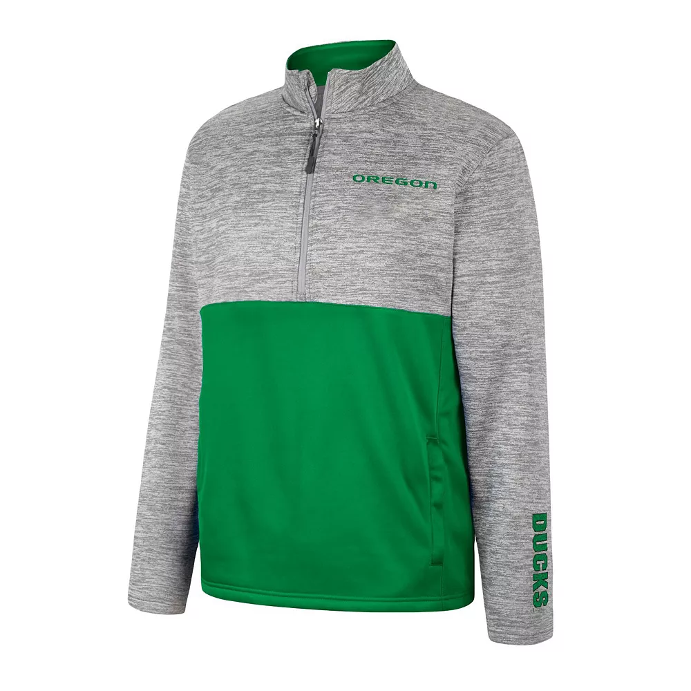 Put your Oregon Ducks fandom on full display with this Colosseum John half-zip jacket. It features vibrant team graphics so nobody can doubt where your loyalty lies. This midweight jacket also has a mock neck to help protect you from the elements on Oregon Ducks game days.