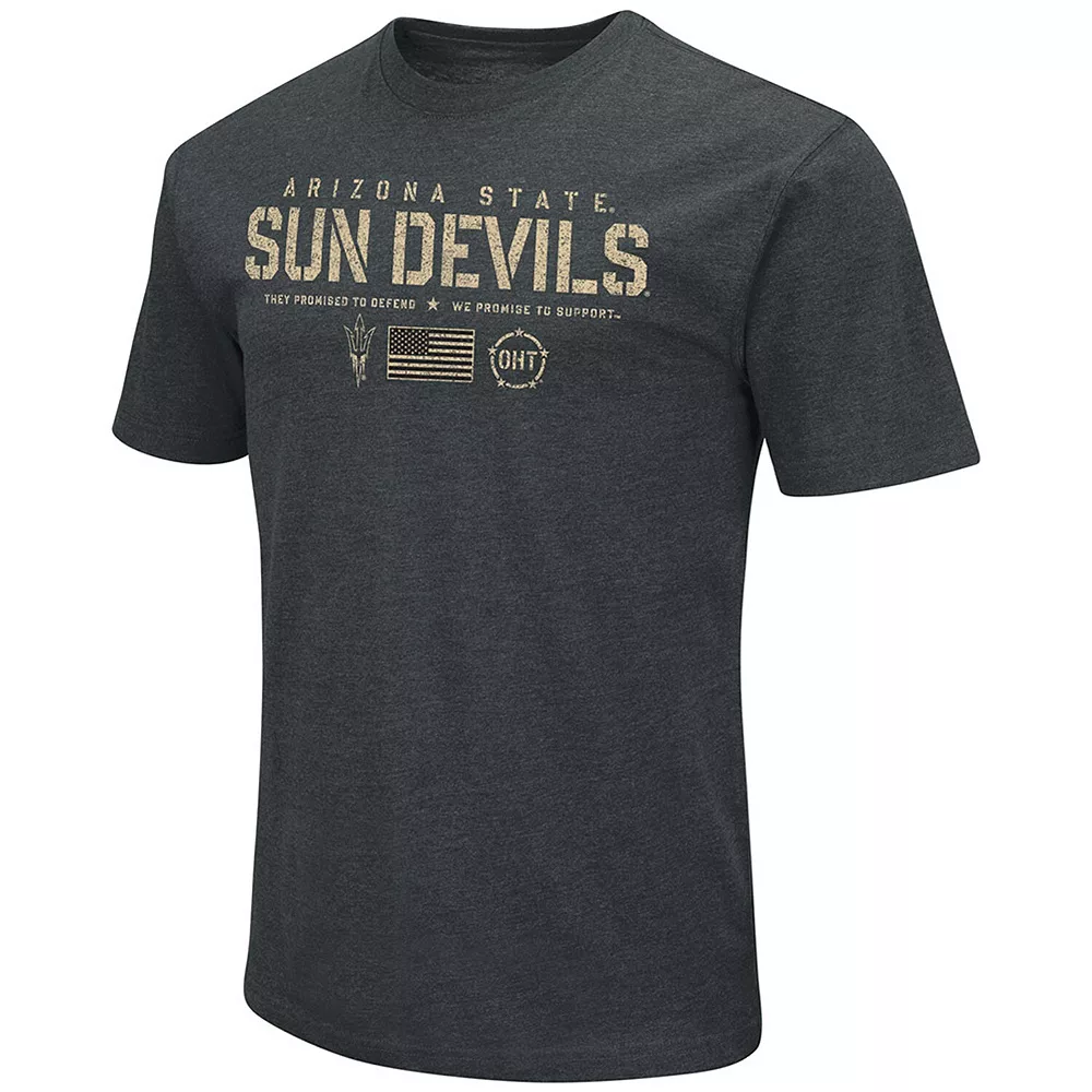 Show off your Arizona State Sun Devils spirit with this OHT Military Appreciation Flag 2.0 T-shirt from Colosseum. Designed with distressed details for a vintage look, this casual tee is great for everyday wear. The ultra-soft material maximizes comfort, helping you feel great as you cheer on the Arizona State Sun Devils.
