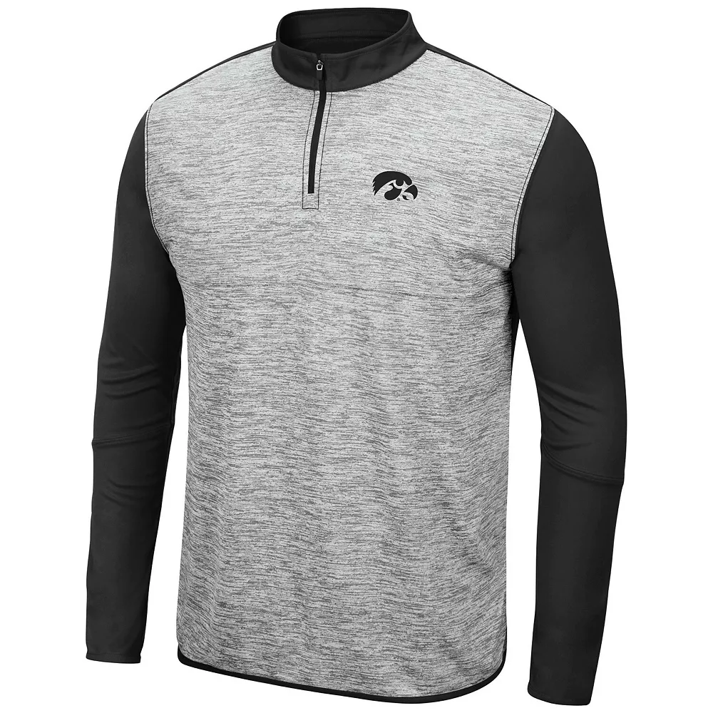 Create an ensemble well suited to your Iowa Hawkeyes pride with this Prospect jacket. Colosseum has crafted a lightweight jacket that’s great as a layering piece or for keeping warm on slightly chilly days. Its subtle Iowa Hawkeyes graphics are enhanced by the contrasting sleeves, back and collar, allowing this quarter-zip to be paired with other team apparel easily.