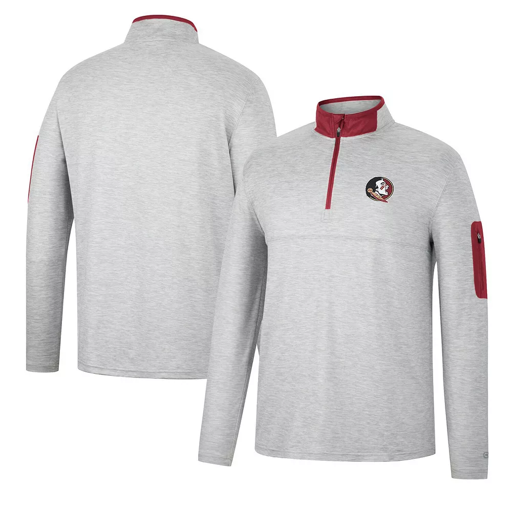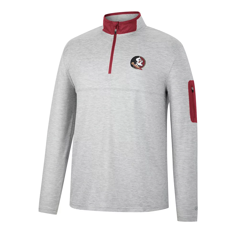 Grab this Colosseum Country Club quarter-zip jacket to show off your fiery Florida State Seminoles spirit in style. It offers lightweight construction to promote breathability as well as a zippered sleeve pocket to securely hold essentials. On top of that, the Florida State Seminoles graphics let everyone know who you root for come game day.