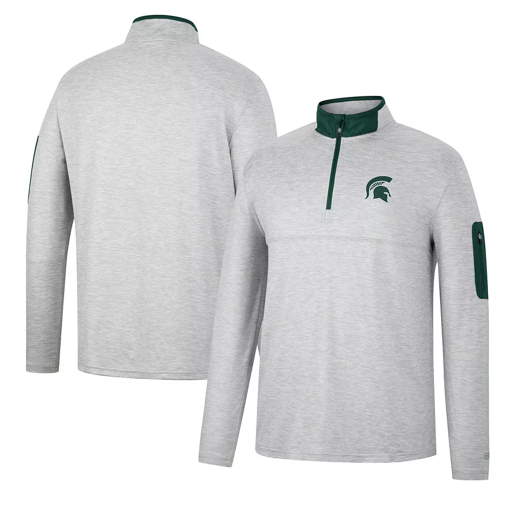 Grab this Colosseum Country Club quarter-zip jacket to show off your fiery Michigan State Spartans spirit in style. It offers lightweight construction to promote breathability as well as a zippered sleeve pocket to securely hold essentials. On top of that, the Michigan State Spartans graphics let everyone know who you root for come game day.