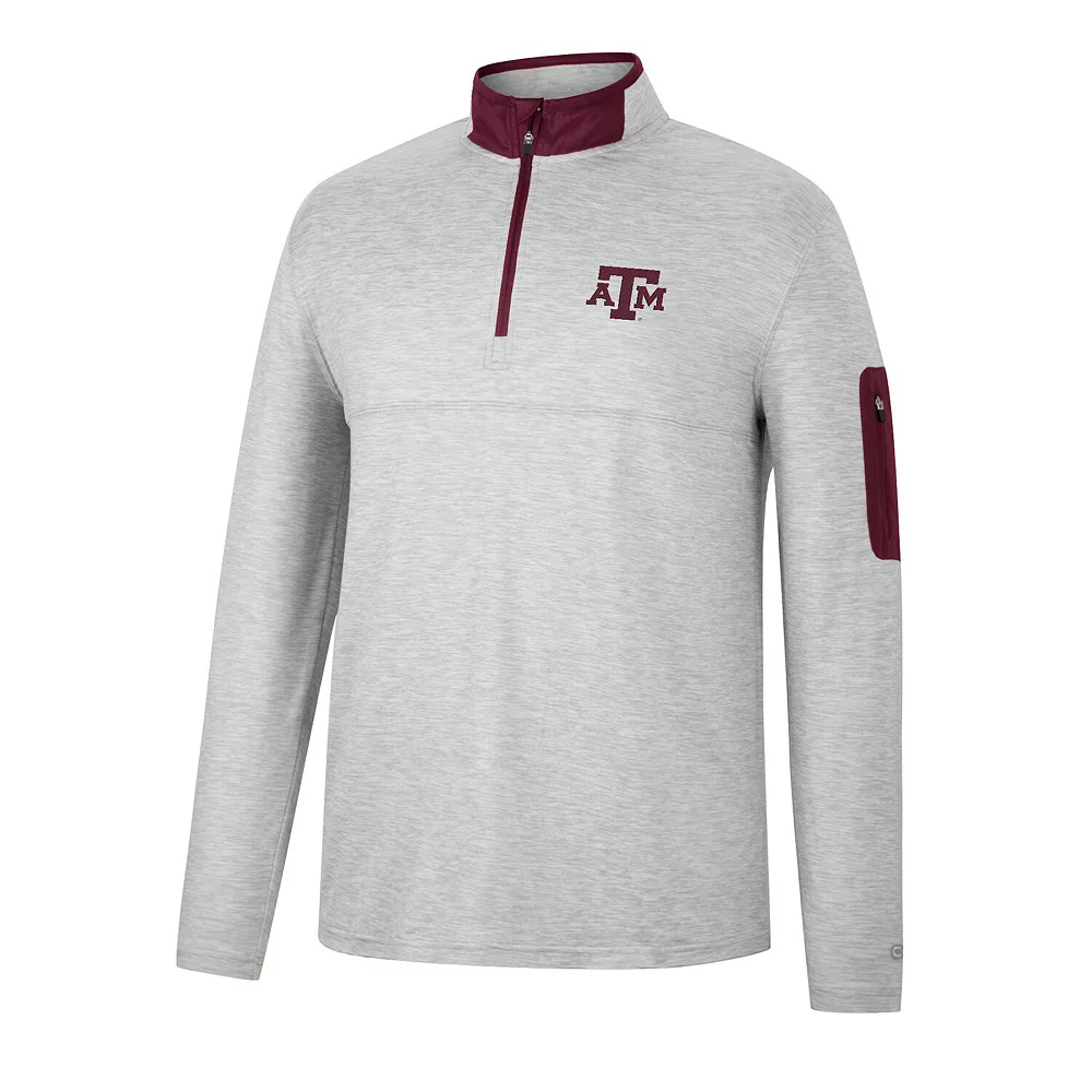 Grab this Colosseum Country Club quarter-zip jacket to show off your fiery Texas A&M Aggies spirit in style. It offers lightweight construction to promote breathability as well as a zippered sleeve pocket to securely hold essentials. On top of that, the Texas A&M Aggies graphics let everyone know who you root for come game day.