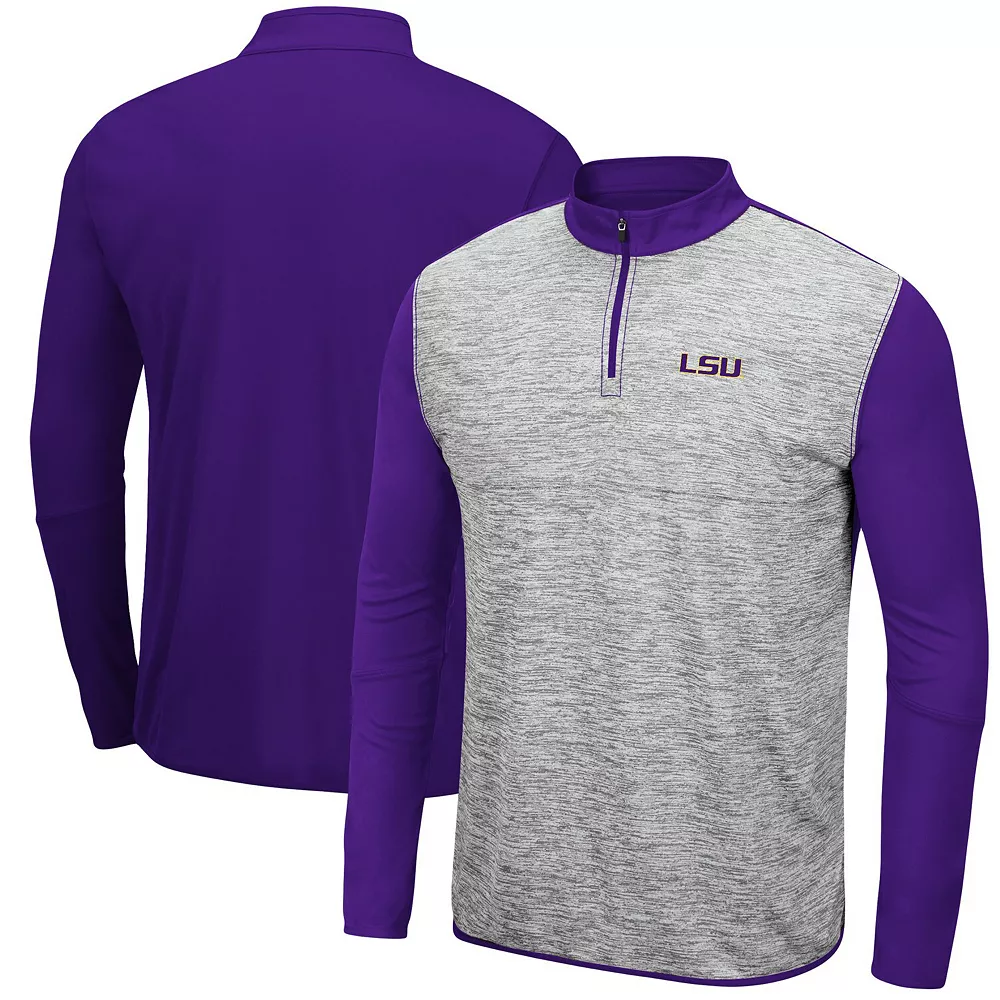 Create an ensemble well suited to your LSU Tigers pride with this Prospect jacket. Colosseum has crafted a lightweight jacket that’s great as a layering piece or for keeping warm on slightly chilly days. Its subtle LSU Tigers graphics are enhanced by the contrasting sleeves, back and collar, allowing this quarter-zip to be paired with other team apparel easily.