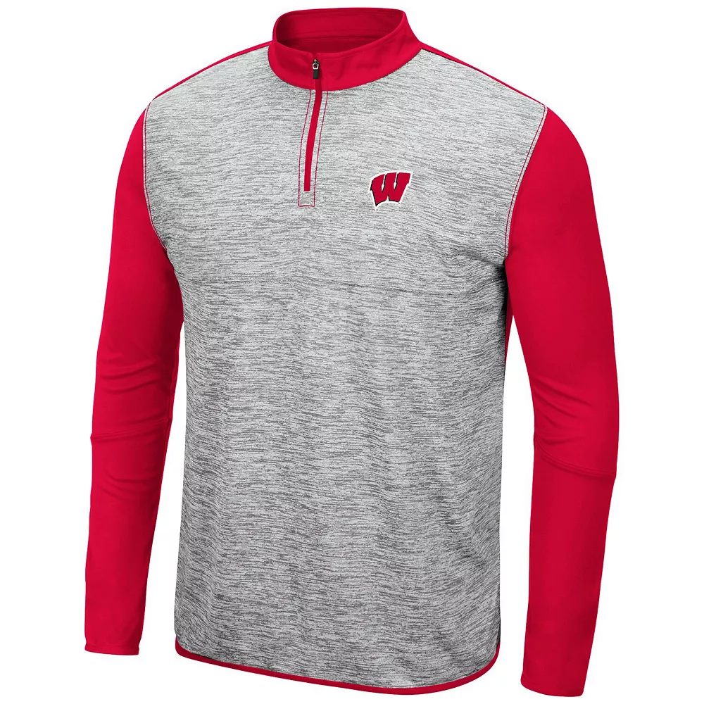 Create an ensemble well suited to your Wisconsin Badgers pride with this Prospect jacket. Colosseum has crafted a lightweight jacket that’s great as a layering piece or for keeping warm on slightly chilly days. Its subtle Wisconsin Badgers graphics are enhanced by the contrasting sleeves, back and collar, allowing this quarter-zip to be paired with other team apparel easily.