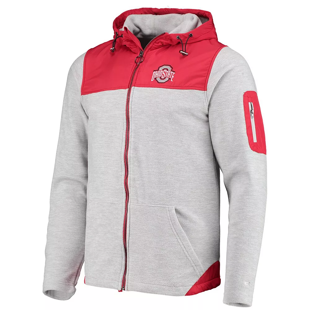 This incredible Ohio State Buckeyes Schwartz full-zip jacket from Colosseum checks all of your winterwear boxes. Its midweight and breathable design on top of the brushed fleece fabric makes it perfect for cooler temperatures. Its full-coverage scuba hood protects you while the plethora of pockets let you conveniently carry your things and warm your hands. Best of all, it features embroidered Ohio State Buckeyes graphics, a contrast-color hood and a sublimated design to bring your unwavering team spirit to the great outdoors.