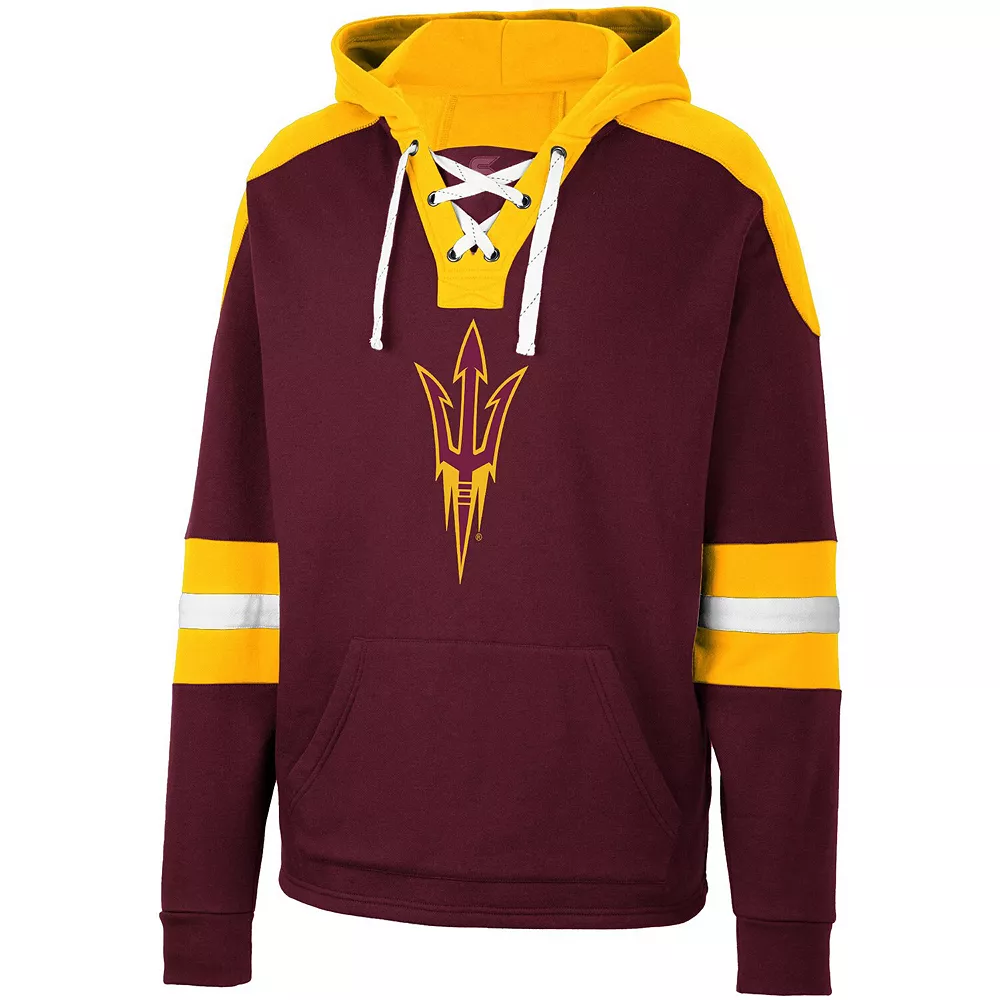 Show your unwavering Arizona State Sun Devils spirit with this Lace-Up 4.0 pullover hoodie from Colosseum. Not only is it the neckline that makes this top unique, but the sewn-on stripes on both sleeves add an extra layer of team color and excitement. The team’s logo across the front is sure to make this midweight piece your next go-to option for Arizona State Sun Devils game day.