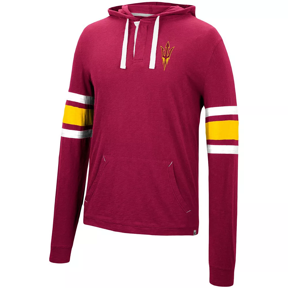 Add a unique look to any fan style with this Arizona State Sun Devils Lebowski hoodie T-shirt. This Colosseum tee features bold team embroidery and eye-catching contrast sleeve stripes. Whether going out bowling or enjoying a night in, give any outfit a relaxed finish with this Arizona State Sun Devils shirt.