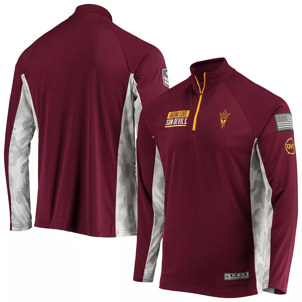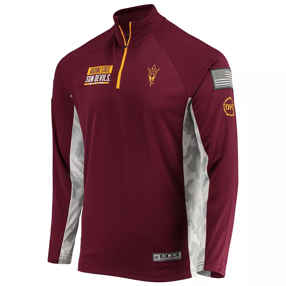 As a loyal member of the Arizona State Sun Devils faithful, your game day gear should be top-notch. Make a quality new addition to your selection with this OHT Military Appreciation Snow Cruise Raglan 1/4-zip jacket from Colosseum. Along with the Arizona State Sun Devils logo on the chest, this jacket comes complete with camo paneling along the arms for a unique extra layer you will be proud to show off.
