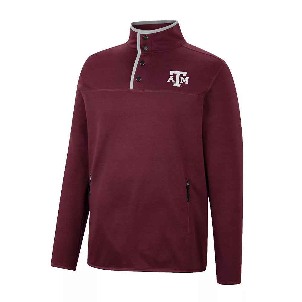 Show that colder temperatures are no match for your fiery passion for the Texas A&M Aggies when you layer up in this Rebound Snap jacket from Colosseum. This bold pullover features a distinct look thanks to its four-snap placket, as well as convenient storage due to its two front pockets. Plus, the fresh Texas A&M Aggies embroidery and vibrant colorway add flair to your chilly weather collection.