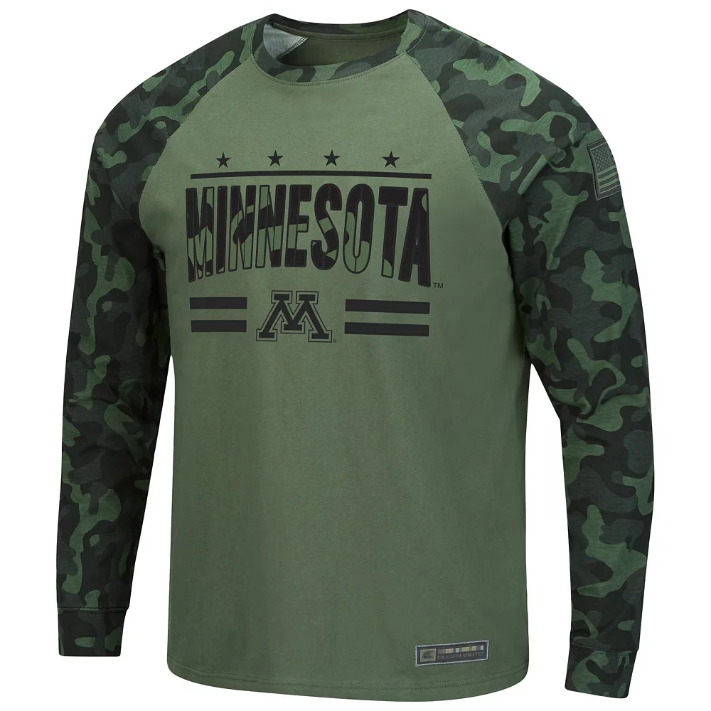 Show off your Minnesota Golden Gophers pride with this OHT Military Appreciation T-shirt from Colosseum. It features a sublimated camo design, but there’s no hiding your love for the Minnesota Golden Gophers thanks to the printed graphics. Raglan sleeves also provide flexible movement, so you can proudly rep your favorite college team in a more comfortable tee.