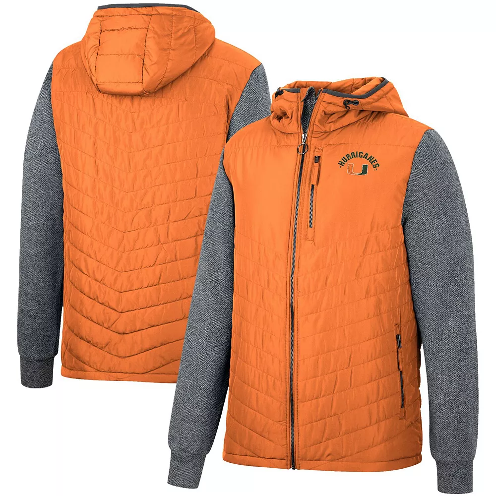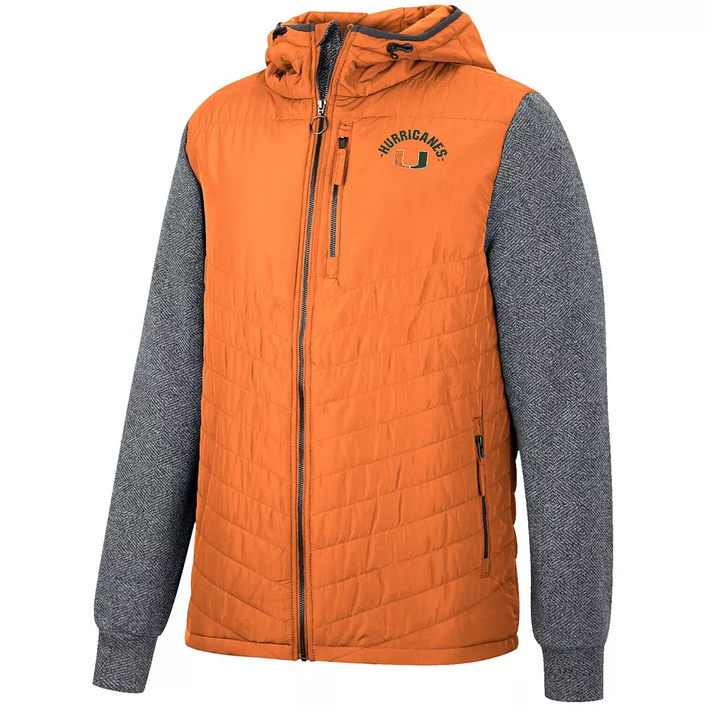 When the temperature drops on game day, layer up with this Miami Hurricanes Course Herringbone full-zip hoodie from Colosseum. The bold embroidered graphics put your fandom on full display, and the scuba hood adds extra protection from the elements. Multiple zippered pockets allow you to keep your necessities within reach while you’re out and about.