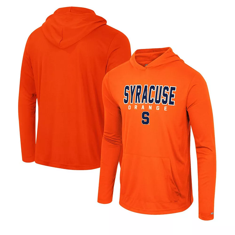 Make your die-hard Syracuse Orange fandom loud and clear by sporting this Rival T-shirt from Colosseum. The authentic team colors that make up this long sleeve tee allow the team graphics displayed across the front to stand out. Thanks to the hood, you’ll be able to stay warm, protected and ready to cheer on your favorite Syracuse Orange players.