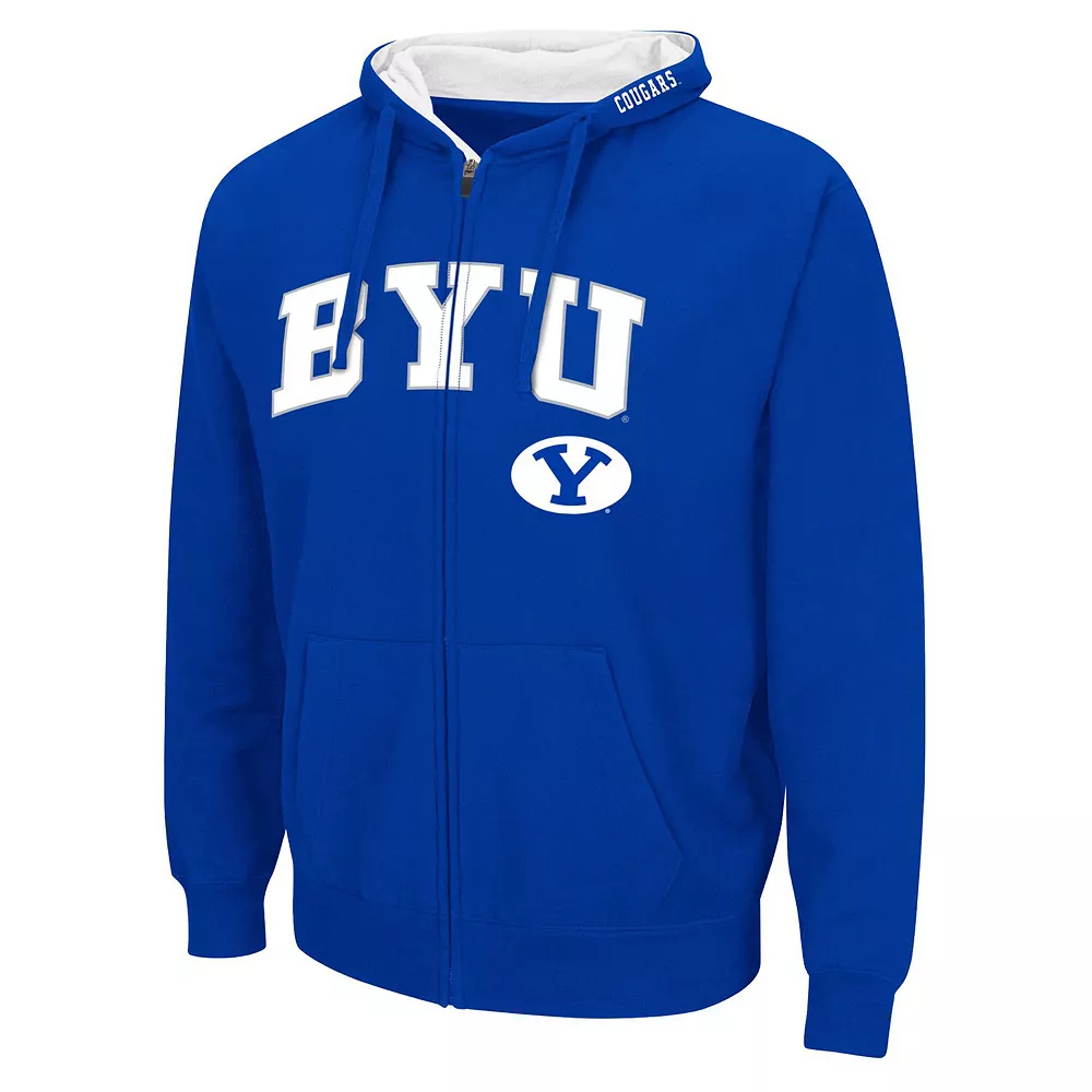 Layer up in a look fit for a true BYU Cougars fan with this Arch & Logo 3.0 hoodie by Colosseum. Its bold graphics across the chest complemented by an understated wordmark on the hood give this full-zip BYU Cougars spirit in spades. The blended material also provides a warm, cozy feel.