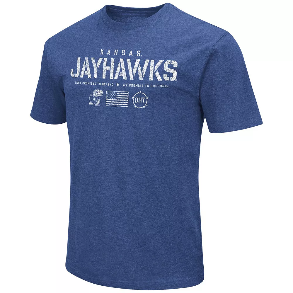 Show off your Kansas Jayhawks spirit with this OHT Military Appreciation Flag 2.0 T-shirt from Colosseum. The ultra-soft fabric and classic crew neck make it perfect for everyday wear. Plus, the bold Kansas Jayhawks graphics highlight your favorite team in a unique design.